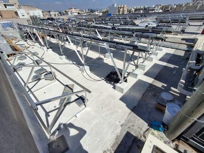 התקנת בניין מגורים – 60 פאנלים תרמיים היברידיים דו-צדדיים פוטו-וולטאיים עבור 58 דיירים בעיר רחובות, ישראל. התקנת ערכת חימום שקופה היברידית דו-צדדית פוטו-וולטאית מעל הגג, המספקת חשמל ומים חמים ל-300 משתמשים בכל לילה בבניין.